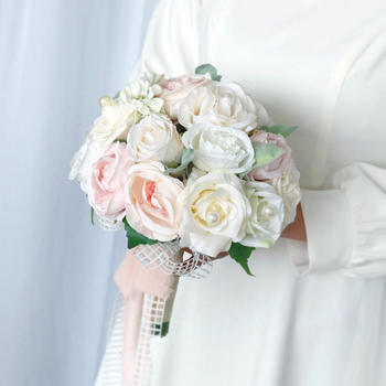 SPH032 Nordic güzel gelin pembe şampanya inci Holding çiçekler düğün yapay gelin Holding düğün buketi